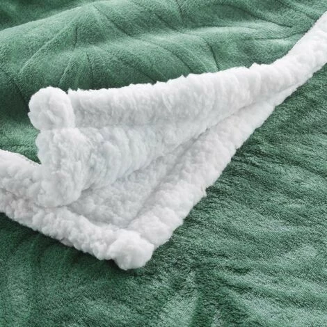 Plaid à motif feuillage. Motif recto et uni au verso.