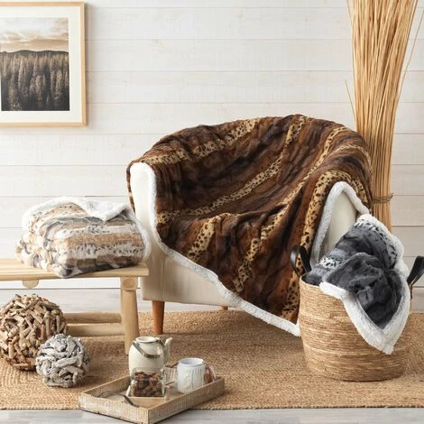 Plaid à motif fourrure. Motif recto et uni au verso.