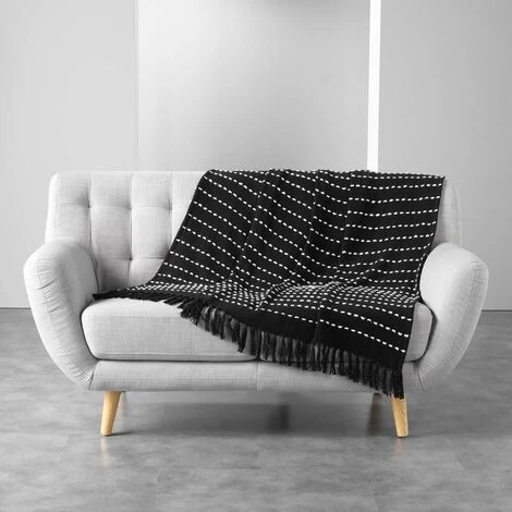 Plaid en coton Dimension : 125 x 150 cm Matière : 100 % coton 360 gr/m² Couleur : noir Finition : plaid à franges motif piqué