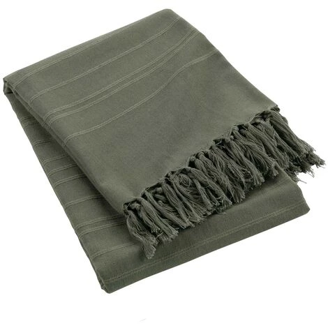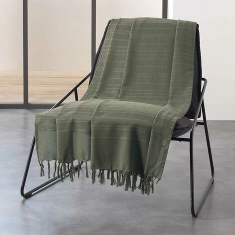 1001KDO POUR LA MAISON Plaid Ou Jete De Canape Coton 150 X 150 Cm Lilie Kaki