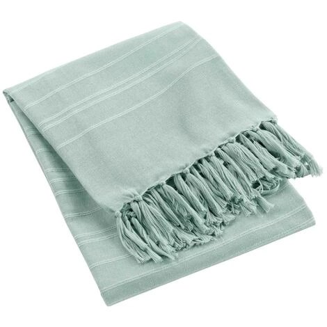 1001KDO POUR LA MAISON Plaid Ou Jete De Canape Coton 220 X 240 Cm Lilie Vert D’eau