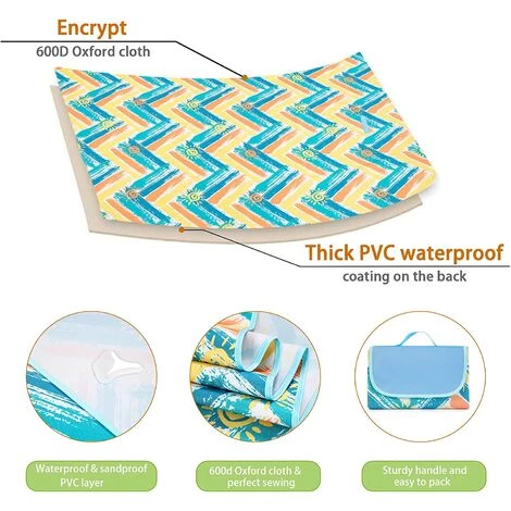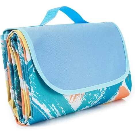 AIDUCHO Couverture De Pique-nique 145 X 200 Cm, Couverture De Plage Imperméable Pliable Avec Poignée De Transport, Tapis De Pique-nique Extérieur Anti-sable Pour Camping Familial, Randonnée Et Activités De Plage (ensoleillé)