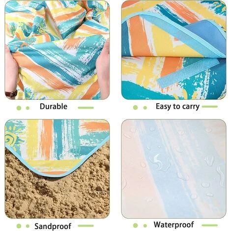AIDUCHO Couverture De Pique-nique 195*200 Cm, Couverture De Plage Imperméable Pliable Avec Poignée De Transport, Tapis De Pique-nique Extérieur Anti-sable Pour Le Camping Familial, La Randonnée Et Les Activités De Plage (Ensoleillé)