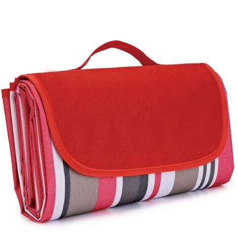 AIDUCHO Couverture De Pique-Nique 195*200CM, Pliable Tapis Plage Surface Imperméable Et Sans Sable, Tapis Pique Niques Pour Plage, Le Parc, La Randonnée, Le Camping, Idéal Pour Les Voyages En Famille-rayures Rouges