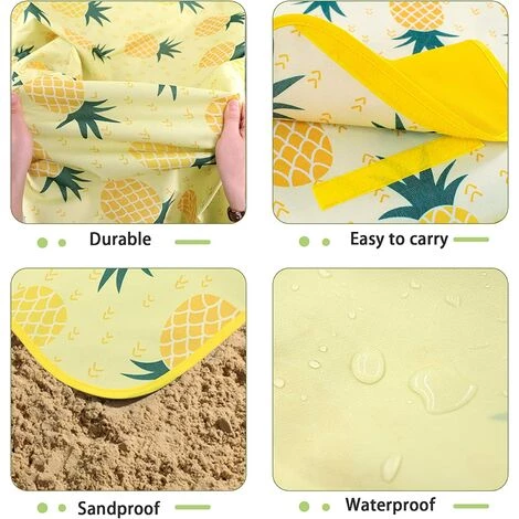 AIDUCHO Couverture De Pique-nique 195 X 200 Cm, Couverture De Plage Imperméable Pliable Avec Poignée De Transport, Tapis De Pique-nique Extérieur Anti-sable Pour Camping Familial, Randonnée Et Activités De Plage (ananas)
