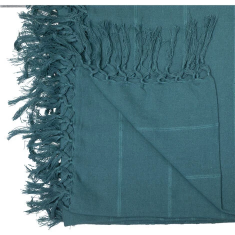 Atmosphera – Jeté de lit en Coton Bleu canard 230 x 250 cm (-)