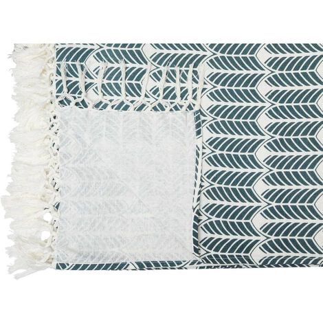 Atmosphera – Jeté de lit en Coton Bleu Canard imprimé Paon 160 x 220 cm (-)