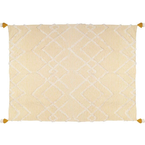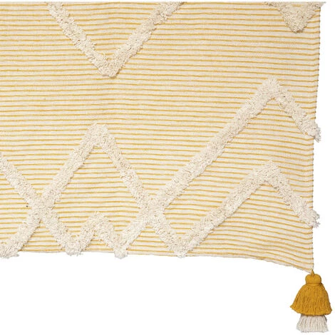Atmosphera – Jeté de lit en Coton Ocre tufté avec Pompons 130 x 180 cm (-)