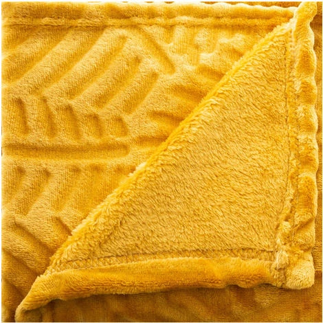 Atmosphera – Plaid Ocre motif Feuille en relief 125 x 150 cm (-) Dimensions Produit : L. 150 x l. 125 cm – – Matière : Polyester – (-) Modèle : Ocre