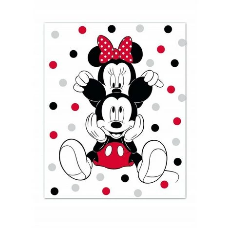 Plaid polaire mickey et minnie pois noir rouge et gris 100x140cm