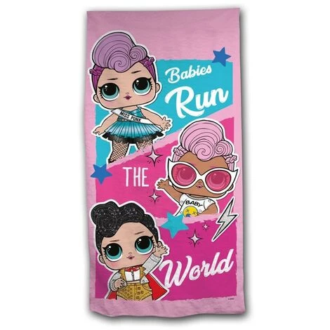 Cette serviette de plage merveilleusement douce constitue un ajout fantastique à une chambre à thème poupées Lol. La conception présente 3 poupées lol sur un fond rose cette serviette est lavable en machine à 30 degrés et fait un cadeau idéal pour toutes petites fans de poupées Lol !