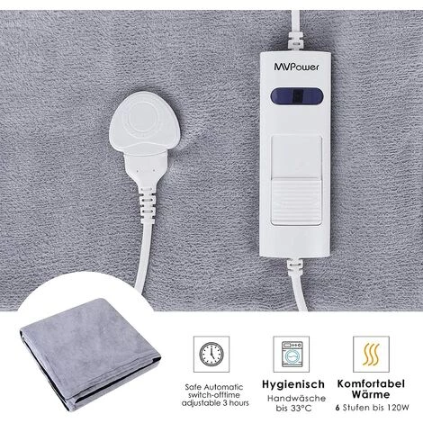 Couleur: bleu marine; | Taille: 180 * 130cm Matériau du coussin: flanelle de luxe Tension: AC 220-240V Puissance: 120W Temps d’arrêt automatique: 180 minutes 1. Si vous connectez le produit au contrôleur, ne tirez jamais sur le coussin chauffant par le cordon d’alimentation. Le contrôleur doit être entièrement connecté. 2. Ne débranchez pas la couverture chauffante par le cordon d’alimentation.