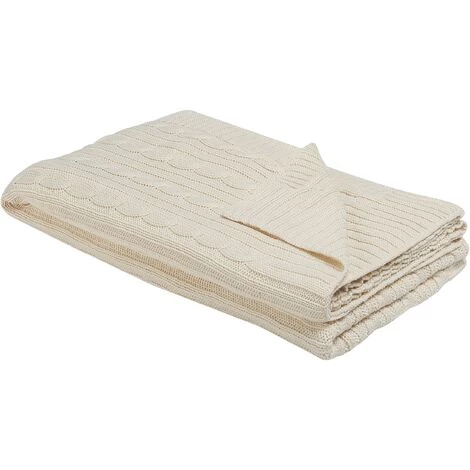 Couverture tricotée beige en coton. Fabriquée entièrement en coton doux, cette couverture est un compagnon de relaxation idéal pour vos longues soirées de repos avec une tasse de thé chaud et un livre au coin du feux. Elle est assez grande pour s’envelopper autour de vous, mais vous pouvez également l’utiliser pour agrémenter le look d’une chaise ou d’un canapé. Dotée d’un motif en maille torsadée, la couverture ajoute du style et de la chaleureusité à n’importe quel type d’intérieur.