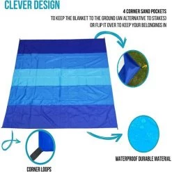 COUVERTURE DE PLAGE À L’EXTÉRIEUR: 1 * Tapis de plage résistant au sable;4 * Ancrages en ABS durables; 1* Mousqueton; 1 * SAC DE TRANSPORTSABLE PROOF & IMPERMÉABLE : La couverture de plage est imperméable, lavable en machine et à séchage rapide, LÉGÈRE : 0,81 lb, couverture de plage/pique-nique de 79 po × 83 po. Il peut être plié dans le sac de transport de 5,1″ × 7,5″, pratique à transporter4 * POCHES DE SABLE & 4 * PIQUETS D’ANCRAGE Il y a 4 poches de sable triangulaires aux coins du tapis de plage, vous pouvez donc mettre du sable ou des roches dans ces poches de sable pour garder la couverture sur le sol ou vous pouvez utiliser les piquets pour la clouer ACCESSOIRES DE PLAGE MULTIFONCTIONNELS : Le tapis de draps de plage en plein air de voyage doux peut être utilisé comme couverture de pique-nique imperméable, camping, parc, sport, randonnée, pêche, etc. Vous pouvez simplement descendre du sable facilement sans coller aux vêtements lorsque vous utilisez cette couverture de plage.Coupe-ventLa couverture de plage d’extérieur est livrée avec 4 piquets d’ancrage à chaque coin 4 poches que vous pouvez remplir de sable ou de pierres pour la fixer au sol.Coupe-ventRien doit s’inquiéter avec 4 piquets supplémentaires pour fixer fermement la couverture pour éviter d’être emporté par les jours venteux. Détendez-vous en paix et profitez de votre temps heureux.Facile à nettoyerLa couverture de plage / pique-nique peut être lavée en machine, sèche rapidement, ne se décolore pas, peut être facilement nettoyée et est un bon accompagnement pour les loisirs en famille.Tapis de plageProfitez de la beauté de la mer et profitez du bain de soleil avec le tapis de plage AISPARKY.Vous pouvez vous allonger dessus pour profiter du soleil au bord de la mer. Notre couverture de plage a unTaille idéale, elle fournira un endroit pour que votre famille ou vos amis se reposent sur la plage. La couverture de pique-nique Matbeach peut également être utilisée pour les tapis de pique-nique. Il peut bloquer l’humidité sur l’herbe.Vous pouvez mettre de la nourriture et des boissons sur les tapis de plage et profiter d’un délicieux pique-nique avec votre famille et vos amis.Tapis de campingCette couverture de voyage polyvalente est parfaite pour vos activités de camping.Elle peut être utilisée comme tapis de plage, pique-nique tapis, Et son effet d’ombrage est excellent, lorsque le soleil est trop fort, vous pouvez également l’accrocher avec une corde pour obtenir un peu d’ombre.