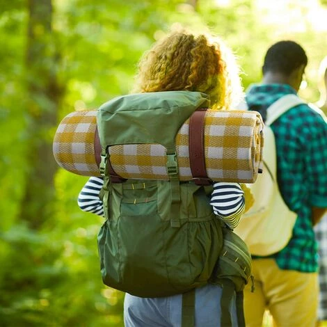【Portable et ultra-léger】 Ce tapis peut être plié dans une petite taille de 37 x 16 x 16 cm avec un rabat auto-agrippant pour un rangement facile. Léger à 950 g, les poignées et les bretelles vous permettent de vous amuser en plein air pour une agréable expérience de pique-nique.