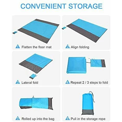 Élimination rapide du sable + hydrofuge : secouez rapidement le sable pour empêcher l’eau de pénétrer dans tous les matériaux de la couverture de pique-nique. Tout sur le tapis peut rester au sec. Et facile à nettoyer, le tapis de plage peut être lavé à la machine à laver (un sac à linge est recommandé).