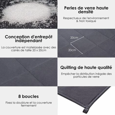 Êtes-vous toujours contrarié par l’insomnie ? Voulez-vous avoir un sommeil de bonne qualité ? Notre couverture ponderée est idéale pour améliorer la qualité de votre sommeil et de votre santé. Et la housse est démontable, c’est très pratique pour vous ! N’hésitez pas ! Achetez un à la maison !