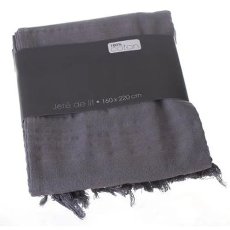 Couvre-lit en coton coloris gris. Ce Jeté de lit d’une qualité exceptionnelle correspond parfaitement au décor de votre chambre à coucher. Très facile à entretenir. Dimensions : 160 x 220 cm. Couleur : gris. Poids : 0.9 kg