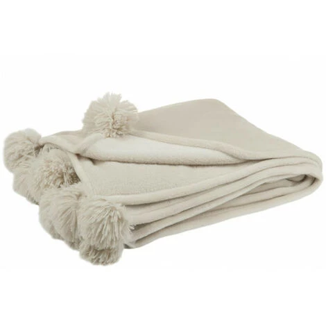 Plaid Pompon Polyester Beige Fonce
