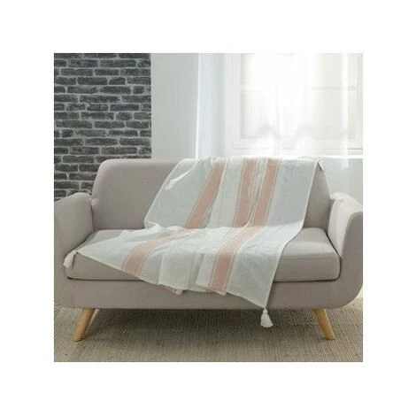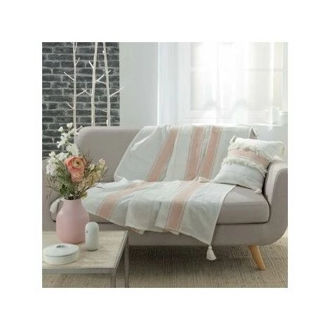 Plaids, jetés Douceur d intérieur INDIRA Rose 125×150 cm. Finition pompons. Lavable en machine. .Maison & Déco > Plaids, jetés..