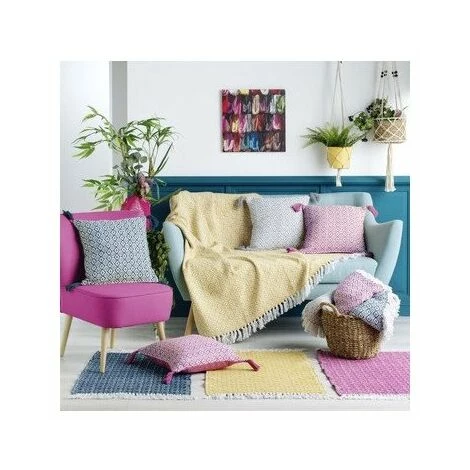 Plaids, jetés Douceur d intérieur PITHAYA Bleu 125×150 cm. Finition à franges. Plaid lavable en machine..Maison & Déco > Plaids, jetés..
