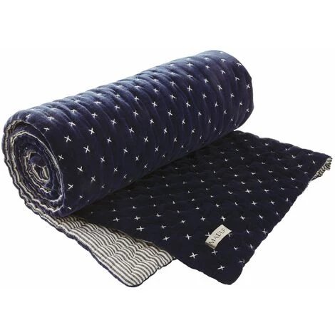 Besoin d’un couvre lit pour réchauffer vos longues nuits d’hiver et apporter une touche de caractère à votre chambre ? Notre courtepointe matelassée MALO vous séduira grâce à ses couleurs très chics et à la douceur incomparable de son velours de coton. Sur la face avant de ce plaid, retrouvez de jolies petites croix brodées dans le velours. Au dos, un mélange de coton et de lin est tissé pour laisser apparaître des rayures blanches et bleues. Ce modèle est disponible dans différentes tailles pour s’adapter à la largeur de votre lit.