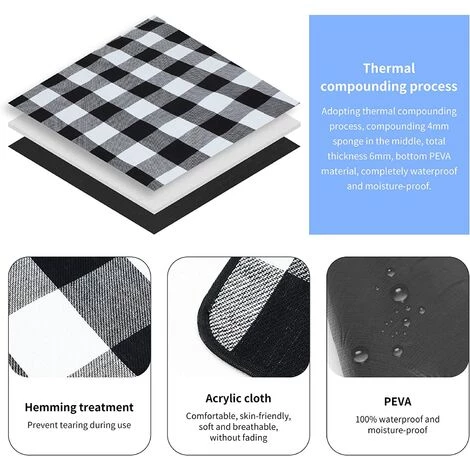 MatĂ©riaux de haute qualité : tissu acrylique + Ă©ponge + tissu acrylique impermĂ©able PEVA (acĂ©tate de polyvinyle) : non seulement confortable, doux pour la peau, doux, respirant, ne se dĂ©colore pas, mais aussi anti-moisissure, antibactĂ©rien et anti -statique. 4 mm d’Ă©paisseur Éponge haute densitĂ©: utilisant la technologie de connexion thermique, plus confortable.