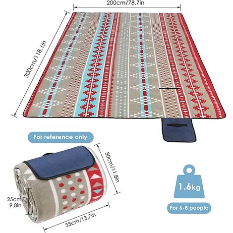 GRANDE COUVERTURE DE PIQUE-NIQUE : La taille de la couverture de pique-nique est de 300 x 200 cm, convient pour 6 à 10 personnes. Avec cette couverture de pique-nique, vous et votre famille pouvez vous allonger sur l’herbe pour regarder le coucher et le lever du soleil. Il convient à la famille et aux amis de voyager ensemble!