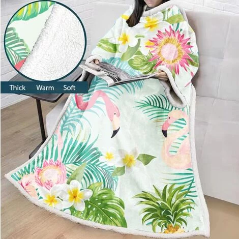 HANBING Couverture Paresseuse Pour Adultes Et Enfants Couverture Rembourrée En Velours De Coton Avec Impression Numérique 3D Avec Manches, A04