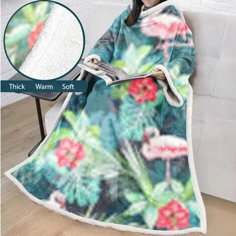 HANBING Couverture Paresseuse Pour Adultes Et Enfants Couverture Rembourrée En Velours De Coton Avec Impression Numérique 3D Avec Manches, A16