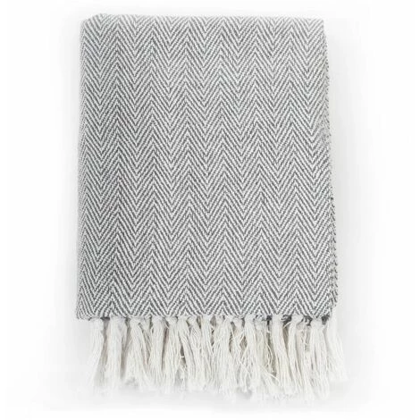 HAPPYSHOPPING Couverture Coton A Chevrons 160 X 210 Cm Gris