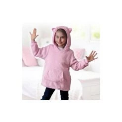 Finition : plaid à capuche avec oreilles, manches et 1 poche sur le ventre. Se replie en forme de peluche.