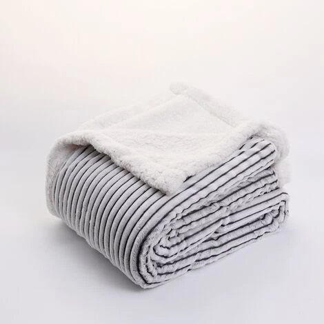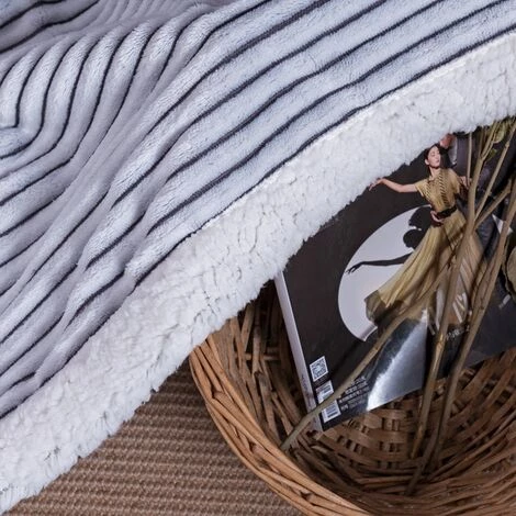 GRAND DESIGN STRIPE : Couleurs classiques avec un design à rayures, montrant le style moderne et simple. D’un côté se trouve le molleton doux 260GSM avec une touche 3D, et de l’autre côté se trouve le Sherpa blanc chaud 220GSM. Il est très approprié pour vous de faire une sieste sur le canapé ou de vous blottir ensemble en regardant la télévision. Par temps froid, il vous gardera au chaud et à l’aise.