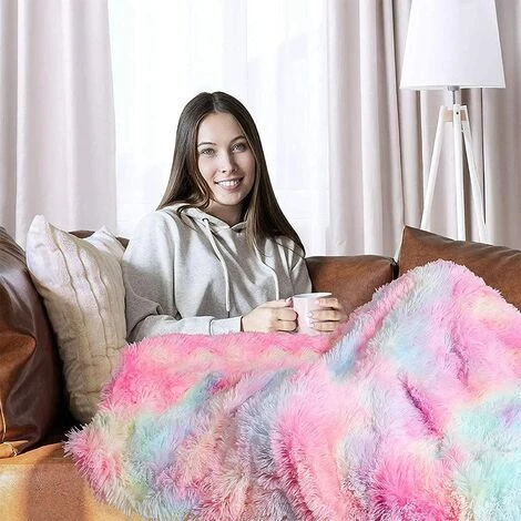 【Style arc-en-ciel super doux】Un nuage qui peut être vu et touché ! La texture du plaid 200x160cm est aussi mignonne et douce que les poils d’un petit chat angora. Vous devrez peut-être rivaliser avec vos amis à fourrure pour en être propriétaire. Les magnifiques couleurs de l’arc-en-ciel sont si agréables à regarder, pleines de vitalité, créant une atmosphère chaleureuse et donnant à votre pièce un embellissement doux et sucré.