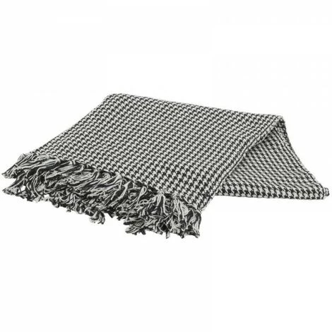 Plaid à franges en coton à motifs pied-de-poule.Matière : coton