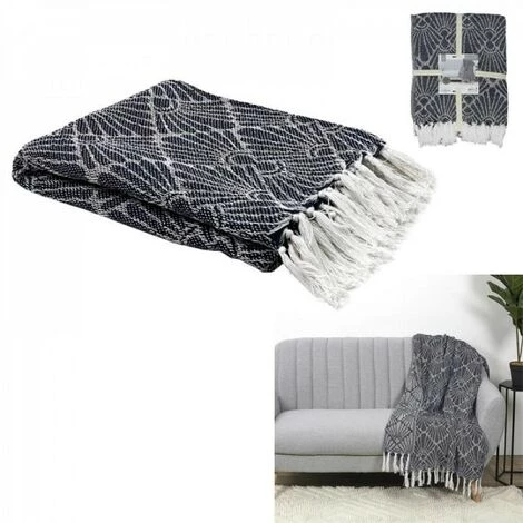 plaid jacquard geometrique marine 125x150cm_x000D_- Assortiment: textile d’interieur,_x000D_- Marque: HOME DECO FACTORY_x000D_- Dimension (cm): 0.3x150x125_x000D_- Matériaux: textile – coton_x000D_- Couleurs: blanc-bleu marine