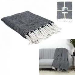 plaid jacquard marine 125x150cm_x000D_- Assortiment: textile d’interieur,_x000D_- Marque: HOME DECO FACTORY_x000D_- Dimension (cm): 0.3x150x125_x000D_- Matériaux: textile – coton_x000D_- Couleurs: blanc-bleu marine