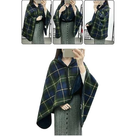 Lady Multifonction Doublelayer Tartan Plaid Blanket Scarf Wrap Shawl Winter Warm