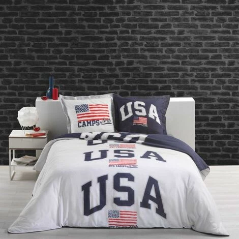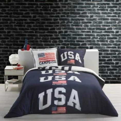 ensemble de literie 3 pièces, 220x240x0.1, imprimé 42 fils allover, camps usa_x000D_Matériaux: 100% coton_x000D_Taille de l’article dans l’emballage: 26x45x6cm_x000D_Lavage: Lavage à 40° – Séchage modéré – Repassage à 150°_x000D_Groupe de produit: licences, parure de couette, parure 3 pièces