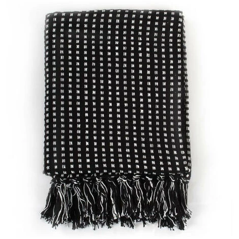 LES TENDANCES Couverture Coton à Carrés 220 X 250 Cm Noir