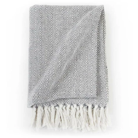 LES TENDANCES Couverture Coton à Chevrons 160 X 210 Cm Gris