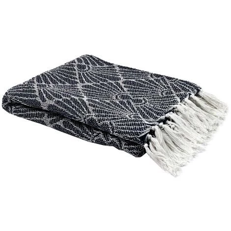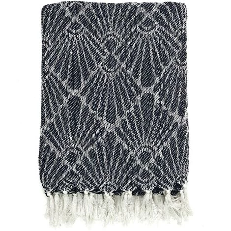 Réhaussez votre intérieur grâce à ce doux plaid jacquard bleu marine aux motifs géométriques, parfait en jeté de lit ! Ses motifs de soleil levant imbriqués ressortiront à merveille sur un canapé ou sur un lit. Avec franges dans un coloris blanc et bleu marine.