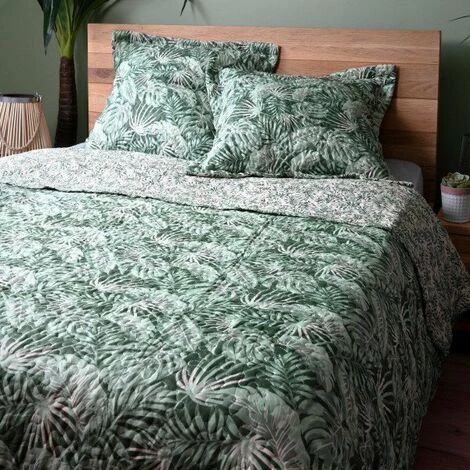 Imprimé : couvre-lit à motif feuillage exotique.