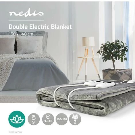 Cette couverture chauffante électrique Nedis® pour 2 personnes vous garantit le confort d’un lit préchauffé le soir. Cette sous-couverture très douce deux places de 160 x 140 cm est en polaire à carreaux et polyester et est facile à placer sous les draps pour préchauffer le lit. Cette couverture sûre et de haute qualité vous gardera bien au chaud par temps froid. Cette couverture convient pour 2 personnes et est équipée d’un contrôleur par personne pour pouvoir régler séparément la température à votre convenance. Le contrôleur dispose de neuf réglages de chaleur, d’un minuteur (une à neuf heures) et d’un affichage LED. Le contrôleur étant amovible, il est possible de laver la couverture.