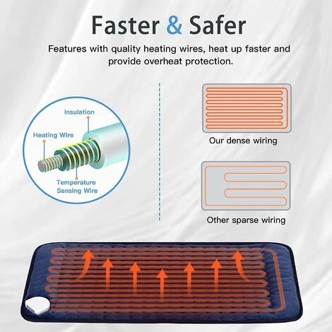 Taille Parfaite : 60 x 30 cm L’tapis chauffant réchauffe de plus grandes zones du corps en même temps, comme le dos, le cou, les épaules, l’abdomen, les jambes et même les articulations. Le cordon d’alimentation mesure 210 cm, ce qui vous laisse beaucoup de place pour vous déplacer.