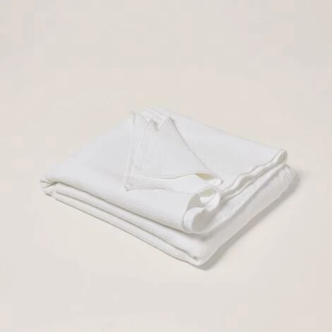 Pour se créer un lit douillet rien ne vaut un joli plaid ! Réalisé en jacquard à l’effet d’un piqué de coton, on aime le choix de la finition frange coupée bord franc et du point bourdon ton sur ton. Il devient bohème tout en restant chic. Pour apporter une touche déco à la chambre, il peut se poser au bout de lit ou bien le recouvrir. Il se marie parfaitement au linge de lit en gaze de coton pour créer une véritable enveloppe de douceur.