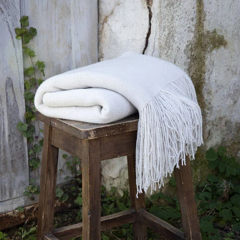 Plaid maille à franges en acrylic gris clair 100% Acrylic. 225 gr/m². Franges 10 cm des 2 côtés. Lavable à 30°C, séchage rapide, pas de repassage. Dimensions : 125 x 150 cm. Coloris : gris clair. Matière : 100 % acrylic. Poids : 0.4 KG