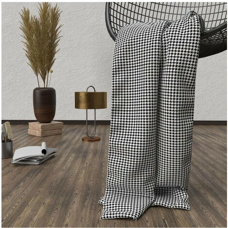 Toucher ultra doux pour ce plaid polaire microfibre imprimé. Couleur: Style pieds de poule: blanc et noir. Composition: 100% polyester microfibre Entretien: Entretien facile Lavage 40° en machine