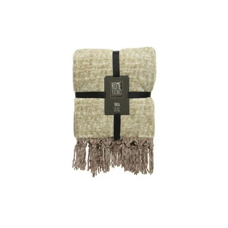 Plaids, jetés Decoris AUGUSTIN Beige 150×200 cm. Finition flanelle melée.Décoration à franges chenille..Maison & Déco > Plaids, jetés..