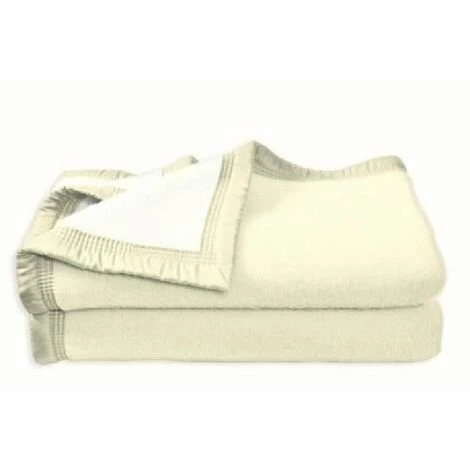 Couverture Aubisque Woolmark – 100% Laine – Bicolore naturel et blanchi – 240 x 300 cm Couverture Aubisque Woolmark – 100% Laine – Traitement antiboulochage – Bordée ruban 100mm 3 piqûres – Dimensions : 240 x 300 cm – Coloris : naturel et blanchi